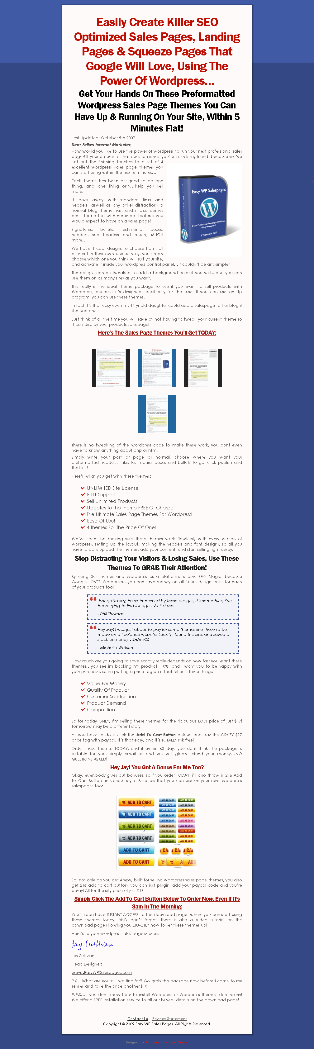 Keywords: sales page;wordpress